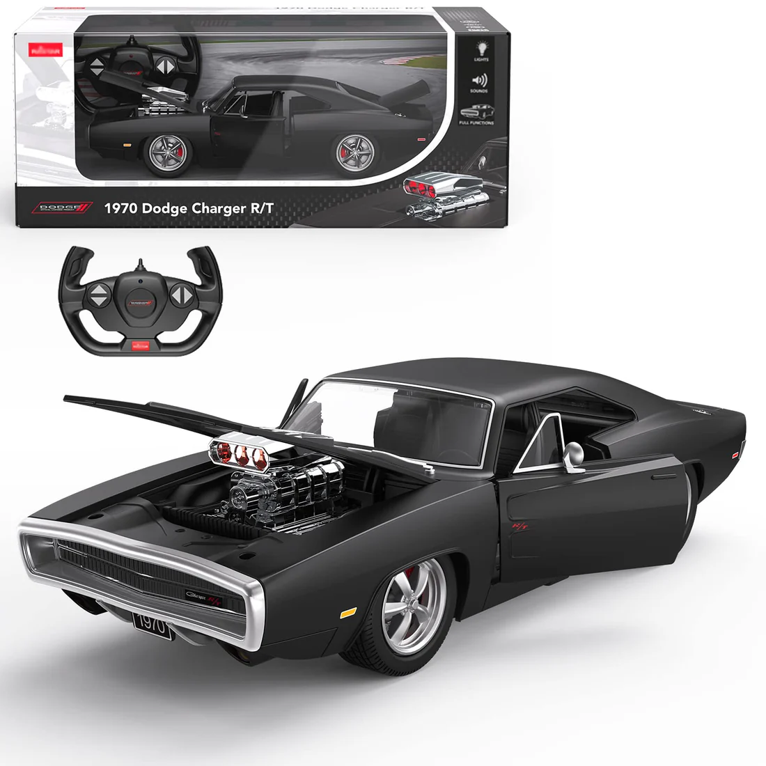 - This RC car is officially authorized by Dodge, The model car is manufactured on a 1:16 scale according to 1970 Dodge Charger R/T, Charger is the representative of muscle car, the toy car highly restored real car style, it measures about 12.99*5.08*3.54inches.