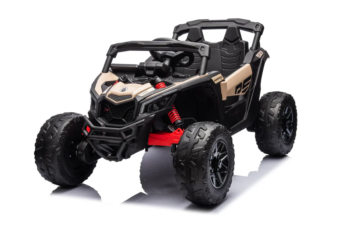 The Can Am Maverick 24V UTV offers young adventurers aged 36-96 months the ultimate ride-on experience. This officially licensed electric UTV comes with four powerful 200W motors and a robust 24V battery, delivering a top speed of 5MPH. It provides up to 50 minutes of fun on a full charge. This ride-on UTV stands out with its 2.4G remote parental control, three-speed modes, and manual 22/44 switch for various terrains. The safety features include a two-point seat belt, emergency stop button, and 30 meters of remote control override. Packed with entertainment options like MP3/USB inputs, radio, Bluetooth, and speakers, alongside bright LED lights and a button start, it’s designed for endless fun and safe rides.