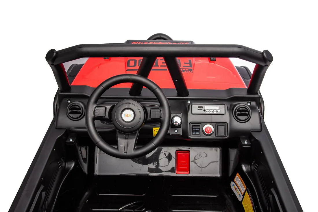 - The bright red bodywork makes this car distinct and unique. An energetic car with a powerful battery to take you and your adventure partner anywhere you want. Only this screen separates you from owning it and conquering the world on wheels.