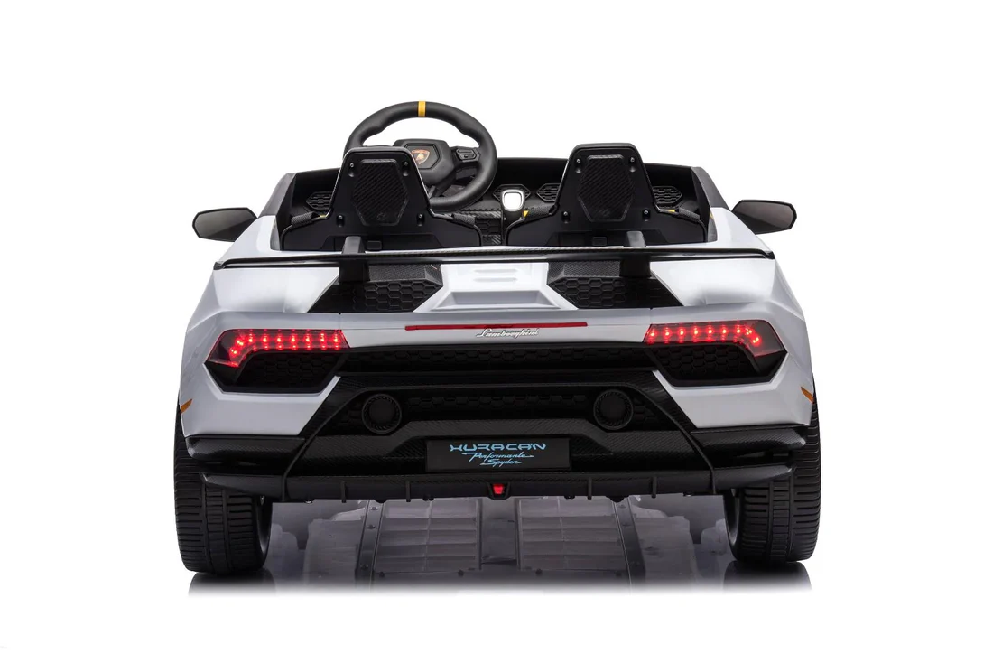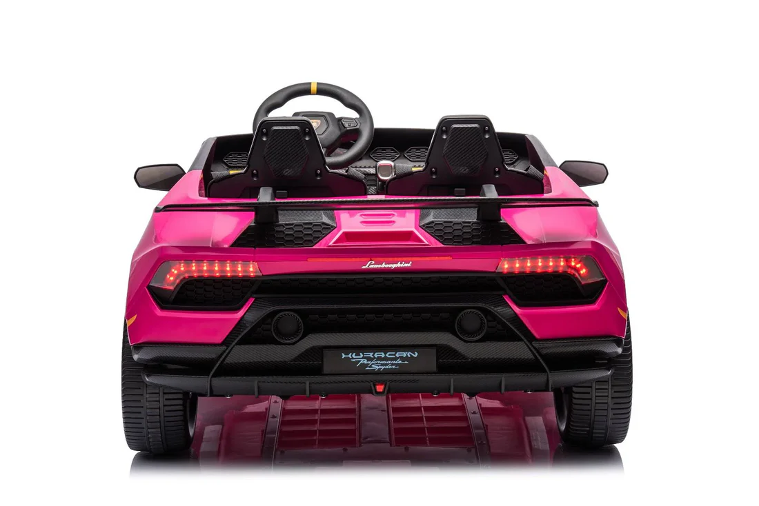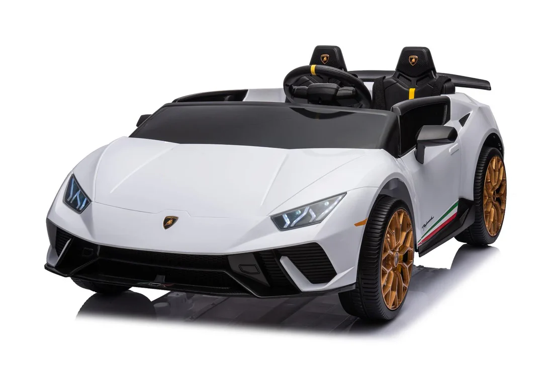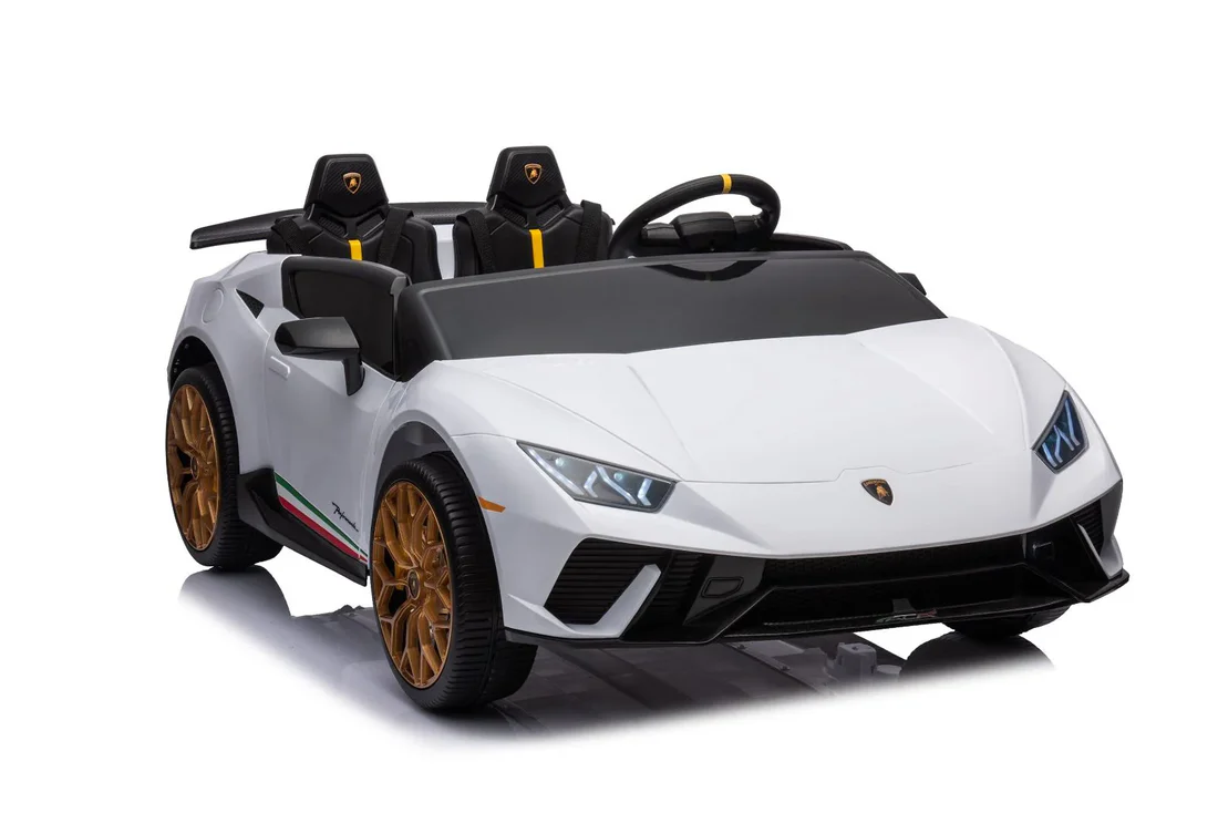 - Luxurious Lamborghini Design: A 2-seater ride-on that embodies the sleek design of a real Lamborghini Huracan, available in white, pink, and black colors.